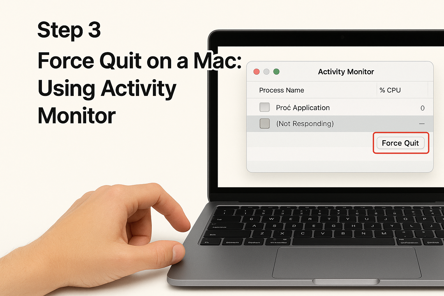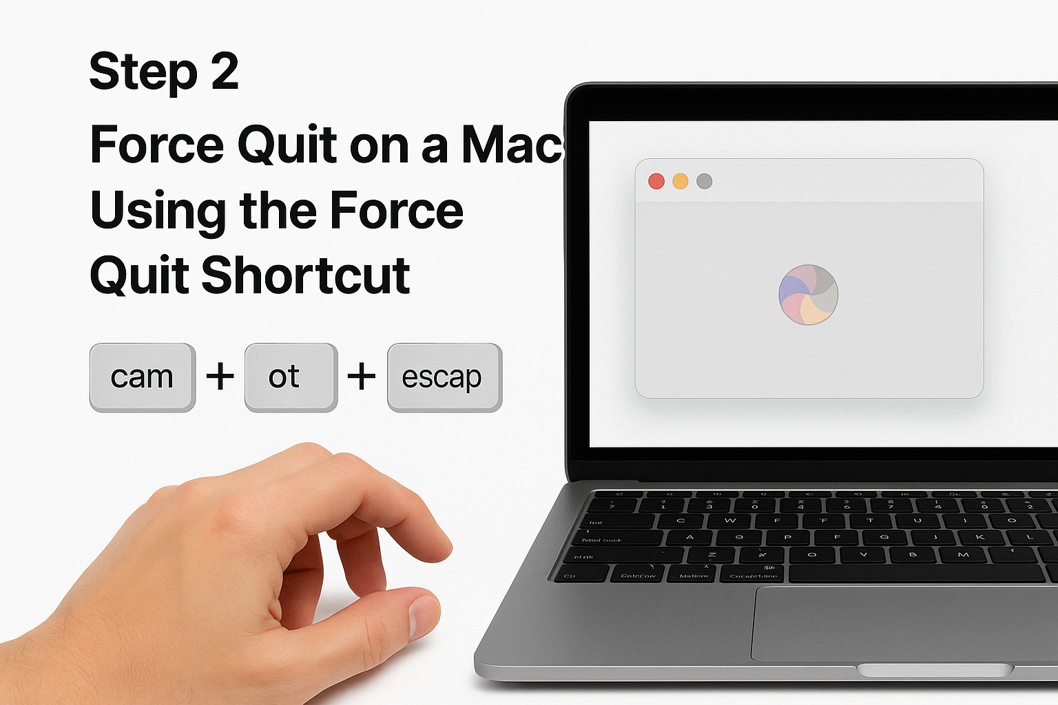 Step 1: Press and hold these three keys simultaneously: Command (⌘) + Option + Escape